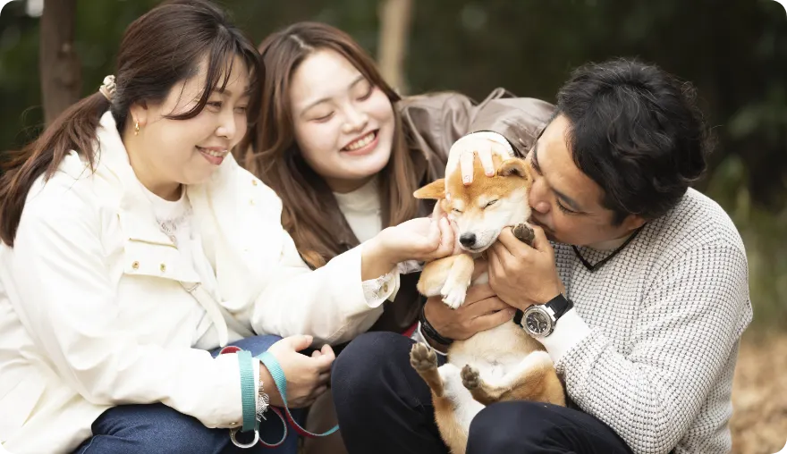 和明さん もともと柴犬が大好きで、いつか飼いたいと思っていました。自分のベッドで一緒にワンちゃんと寝る夢があって、柴犬だと大きいので豆柴がベストなサイズだな、と思っていました。仕事の途中にペットショップでこの子を見かけたんです。その時は気になりながらもその場を離れたのですが、翌日になって「やっぱりいいなあ、欲しいなあ。」という想いが強くなってきまして。会社の仲間から「そんなに飼いたいなら、電話してみたらいいじゃないですか。」と背中を押されました。電話したら、すでにいなかったんですね。後悔しました。でもすぐに、実は別の店舗に移されただけだとわかりました。こんなチャンスはもう来ないと思って、お店に飛んで行って契約しました。