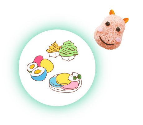 デコふりならパスタやうずらの卵も色付けできちゃいます。ごはんもおかずもカラフルな楽しいお弁当が作れます。