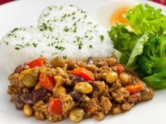 ミックスビーンズを使ったお豆たっぷりのキーマカレーです。ミックスビーンズは3種(大豆、青えんどう、赤いんげん)の豆が入っており、ドライパックなので水戻しも必要なくそのままご使用頂けます。辛口がお好みの場合はカレー粉を増やしたり、甘口がお好みの場合は砂糖を増やしたり、お好みに合わせて調節してください。